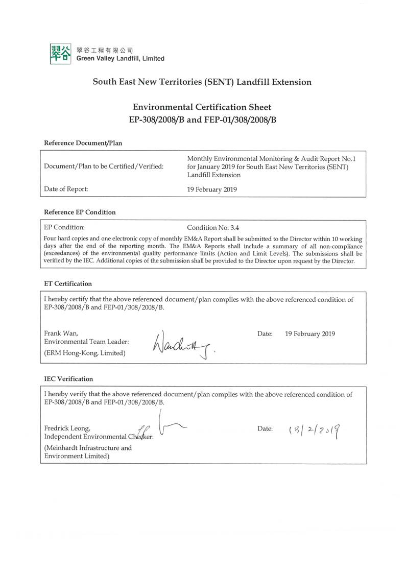 Since then, applications for Variation of an Environmental Permit (No. VEP-531/2017) were submitted to EPD and the Variation of Environmental Permits (EP-308/2008/A and EP-308/2008/B) were granted on 6 January 2012 and 20 January 2017, respectively, as the Hong Kong SAR Government has decided to reduce the scale of the design scheme of SENTX assessed in the approved EIA Report and SENTX will only receive construction waste. In May 2018, a Further Environmental Permit (FEP) (FEP-01/308/2008/B) was granted to the SENTX¡¦s contractor, Green Valley Landfill, Limited (GVL).