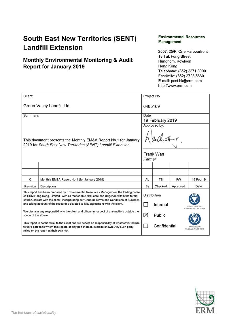 The SENT Landfill Extension (SENTX) forms an integral part in the Strategic Plan in maintaining the continuity of landfill capacity in the Hong Kong for the cost-effective and environmentally satisfactory disposal of waste. ERM-Hong Kong, Limited (ERM) is commissioned to undertake the role of Environmental Team (ET) for the construction, operation/restoration and aftercare of SENTX Project (¡§the Project¡¨) in accordance with the requirements specified in the Environmental Permit (EP), updated Environmental Monitoring and Audit (EM&A) Manual, the approved Environmental Impact Assessment (EIA) Report of the Project taking account of the latest design and other relevant statutory requirements. The construction (not including works related to site clearance and preparation) of the Project commenced on 2 January 2019.