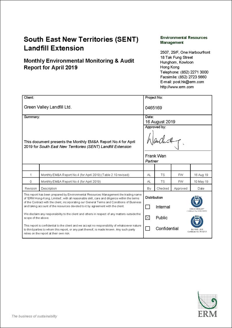 The SENT Landfill Extension (SENTX) forms an integral part in the Strategic Plan in maintaining the continuity of landfill capacity in the Hong Kong for the cost-effective and environmentally satisfactory disposal of waste. ERM-Hong Kong, Limited (ERM) is commissioned to undertake the role of Environmental Team (ET) for the construction, operation/restoration and aftercare of SENTX Project (“the Project”) in accordance with the requirements specified in the Environmental Permit (EP), updated Environmental Monitoring and Audit (EM&A) Manual, the approved Environmental Impact Assessment (EIA) Report of the Project taking account of the latest design and other relevant statutory requirements. The construction (not including works related to site clearance and preparation) of the Project commenced on 2 January 2019.