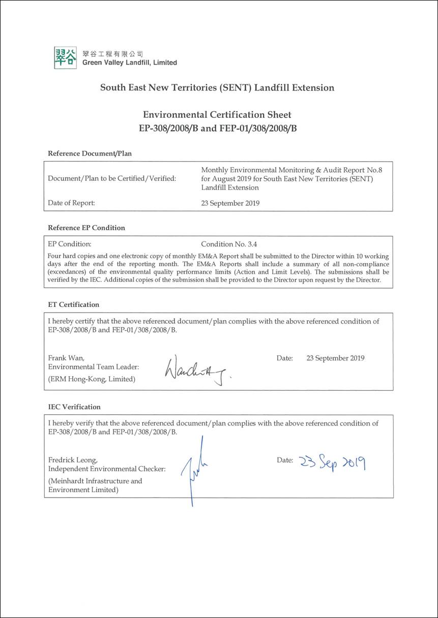Since then, applications for Variation of an Environmental Permit (No. VEP-531/2017) were submitted to EPD and the Variation of Environmental Permits (EP-308/2008/A and EP-308/2008/B) were granted on 6 January 2012 and 20 January 2017, respectively, as the Hong Kong SAR Government has decided to reduce the scale of the design scheme of SENTX assessed in the approved EIA Report and SENTX will only receive construction waste. In May 2018, a Further Environmental Permit (FEP) (FEP-01/308/2008/B) was granted to the SENTX’s contractor, Green Valley Landfill, Limited (GVL).