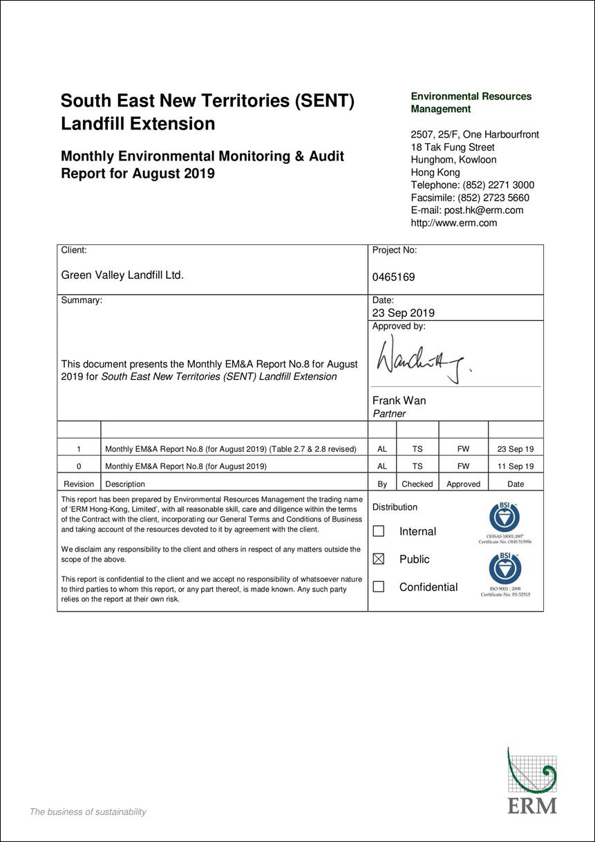 This EM&A Report presents the findings of the EM&A activities undertaken during the period from 1 to 31 August 2019 in accordance with the updated EM&A Manual and the requirements of the Environmental Permit (EP-308/2008/B).