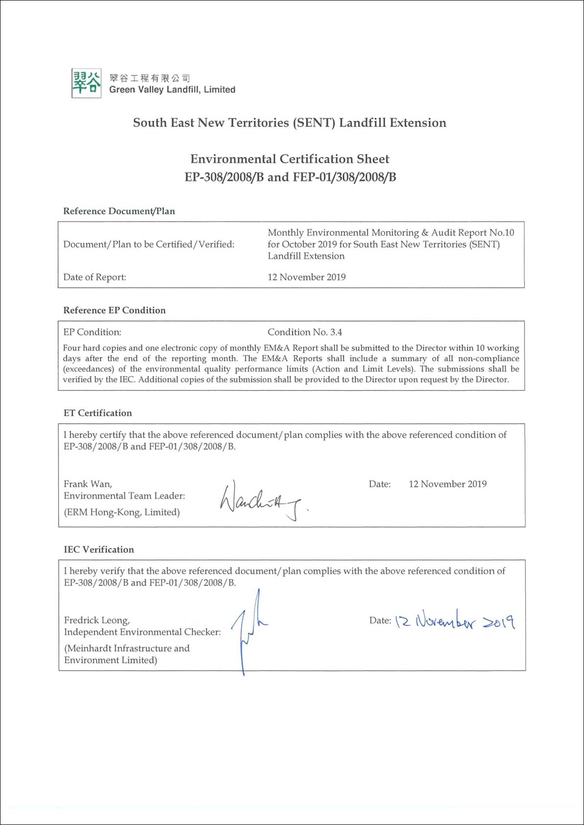 Since then, applications for Variation of an Environmental Permit (No. VEP-531/2017) were submitted to EPD and the Variation of Environmental Permits (EP-308/2008/A and EP-308/2008/B) were granted on 6 January 2012 and 20 January 2017, respectively, as the Hong Kong SAR Government has decided to reduce the scale of the design scheme of SENTX assessed in the approved EIA Report and SENTX will only receive construction waste. In May 2018, a Further Environmental Permit (FEP) (FEP-01/308/2008/B) was granted to the SENTX’s contractor, Green Valley Landfill, Limited (GVL).