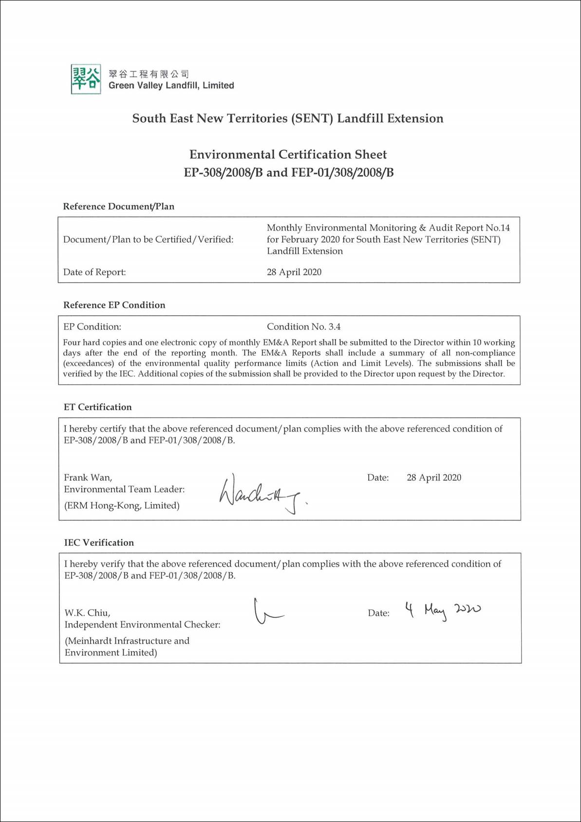 Since then, applications for Variation of an Environmental Permit (No. VEP-531/2017) were submitted to EPD and the Variation of Environmental Permits (EP-308/2008/A and EP-308/2008/B) were granted on 6 January 2012 and 20 January 2017, respectively, as the Hong Kong SAR Government has decided to reduce the scale of the design scheme of SENTX assessed in the approved EIA Report and SENTX will only receive construction waste. In May 2018, a Further Environmental Permit (FEP) (FEP-01/308/2008/B) was granted to the SENTX’s contractor, Green Valley Landfill, Limited (GVL).