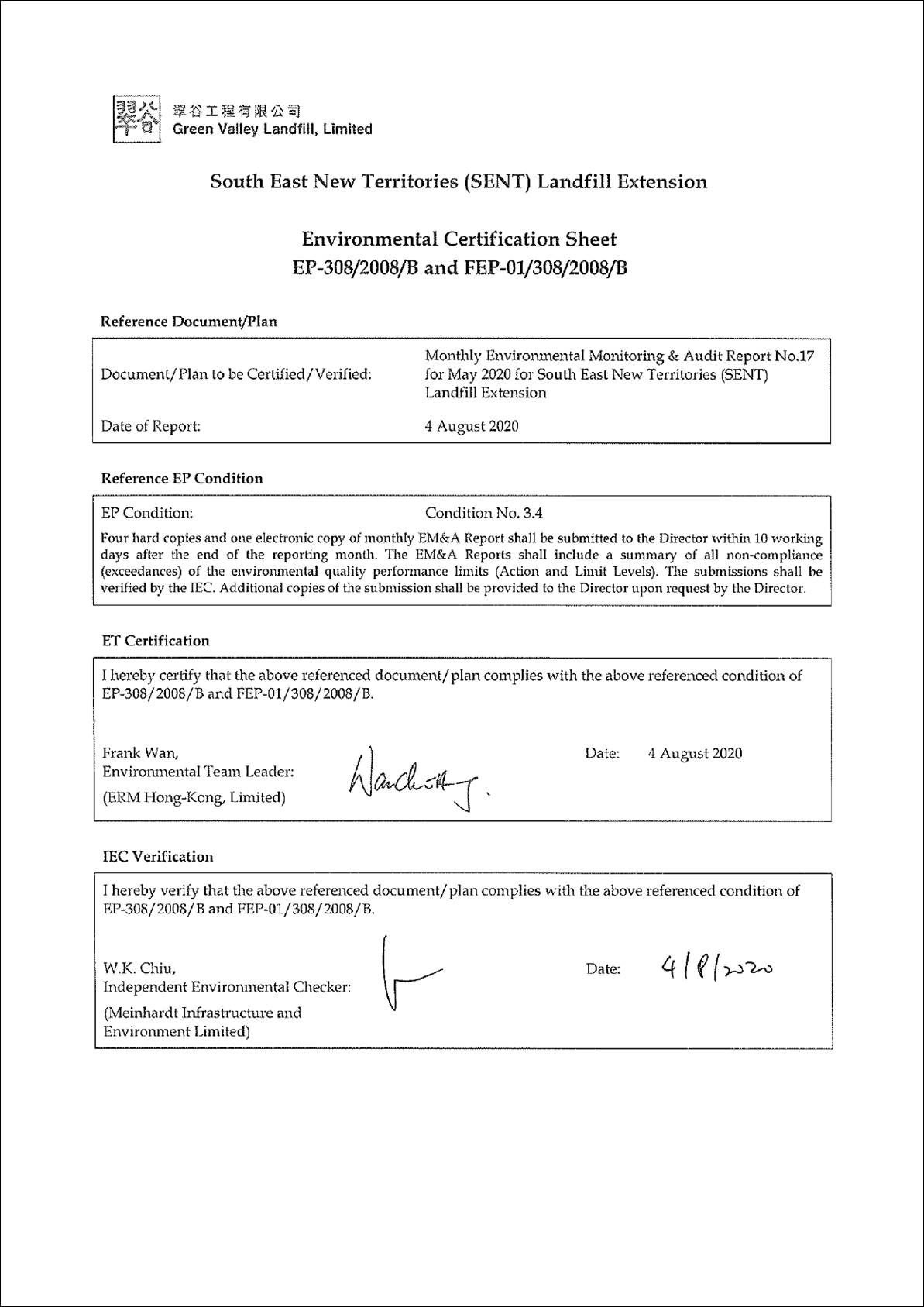 Since then, applications for Variation of an Environmental Permit (No. VEP-531/2017) were submitted to EPD and the Variation of Environmental Permits (EP-308/2008/A and EP-308/2008/B) were granted on 6 January 2012 and 20 January 2017, respectively, as the Hong Kong SAR Government has decided to reduce the scale of the design scheme of SENTX assessed in the approved EIA Report and SENTX will only receive construction waste. In May 2018, a Further Environmental Permit (FEP) (FEP-01/308/2008/B) was granted to the SENTX’s contractor, Green Valley Landfill, Limited (GVL).