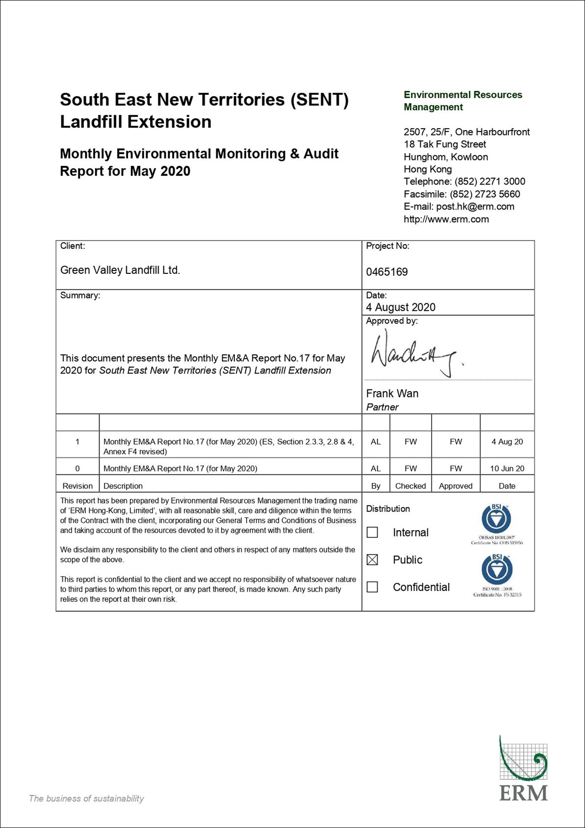 This EM&A Report presents the findings of the EM&A activities undertaken during the period from 1 to 31 May 2020 in accordance with the updated EM&A Manual and the requirements of the Environmental Permit (EP-308/2008/B).