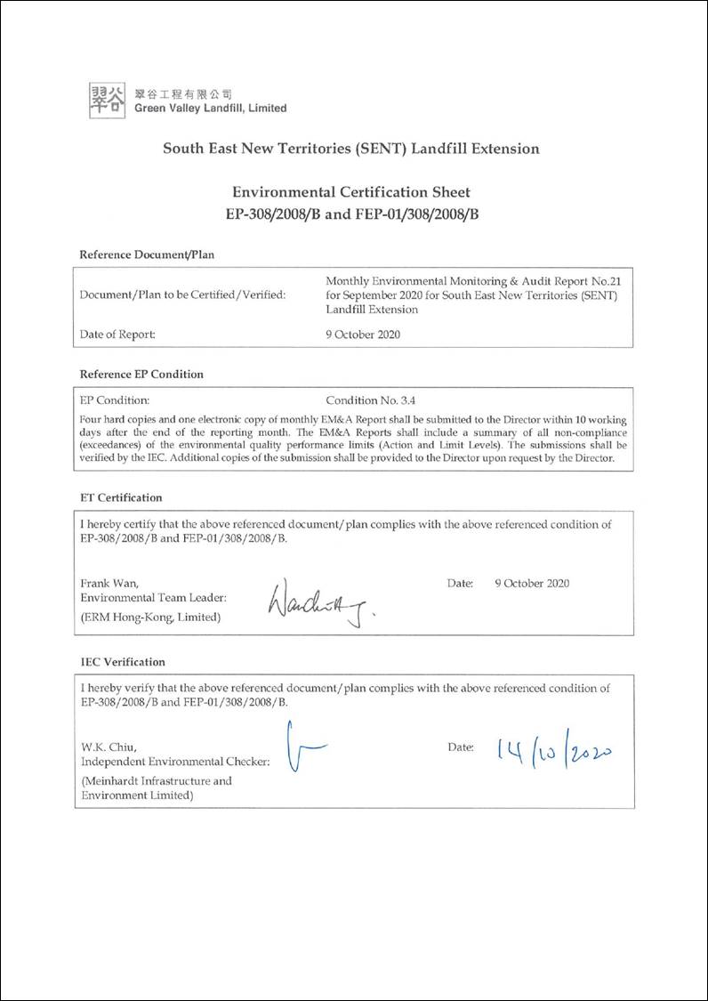 Since then, applications for Variation of an Environmental Permit (No. VEP-531/2017) were submitted to EPD and the Variation of Environmental Permits (EP-308/2008/A and EP-308/2008/B) were granted on 6 January 2012 and 20 January 2017, respectively, as the Hong Kong SAR Government has decided to reduce the scale of the design scheme of SENTX assessed in the approved EIA Report and SENTX will only receive construction waste. In May 2018, a Further Environmental Permit (FEP) (FEP-01/308/2008/B) was granted to the SENTX’s contractor, Green Valley Landfill, Limited (GVL).