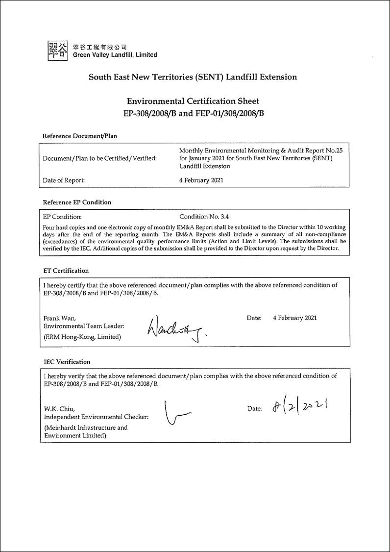 Since then, applications for Variation of an Environmental Permit (No. VEP-531/2017) were submitted to EPD and the Variation of Environmental Permits (EP-308/2008/A and EP-308/2008/B) were granted on 6 January 2012 and 20 January 2017, respectively, as the Hong Kong SAR Government has decided to reduce the scale of the design scheme of SENTX assessed in the approved EIA Report and SENTX will only receive construction waste. In May 2018, a Further Environmental Permit (FEP) (FEP-01/308/2008/B) was granted to the SENTX’s contractor, Green Valley Landfill, Limited (GVL).