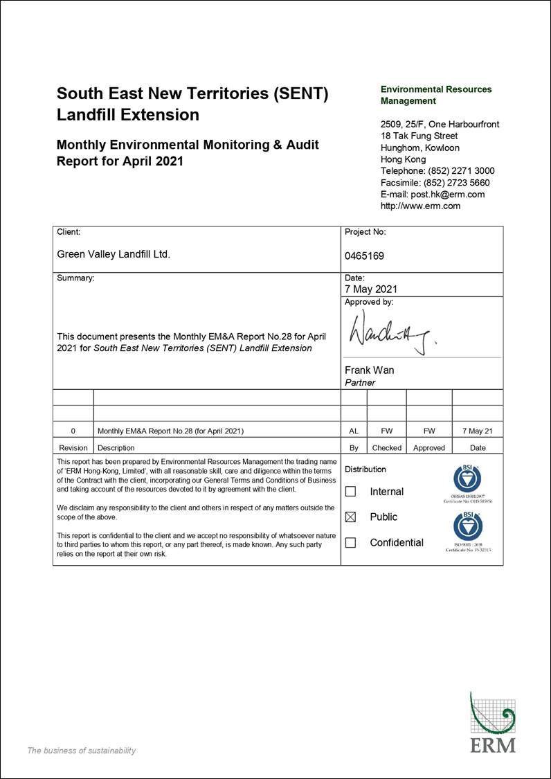 ([1])    ERM (2018).  South East New Territories (SENT) Landfill Extension: Environmental Monitoring & Audit Manual