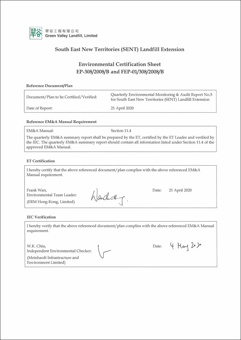 Since then, applications for Variation of an Environmental Permit (No. VEP-531/2017) were submitted to EPD and the Variation of Environmental Permits (EP-308/2008/A and EP-308/2008/B) were granted on 6 January 2012 and 20 January 2017, respectively, as the Hong Kong SAR Government has decided to reduce the scale of the design scheme of SENTX assessed in the approved EIA Report and SENTX will only receive construction waste. In May 2018, a Further Environmental Permit (FEP) (FEP-01/308/2008/B) was granted to the SENTX’s contractor, Green Valley Landfill, Limited (GVL).